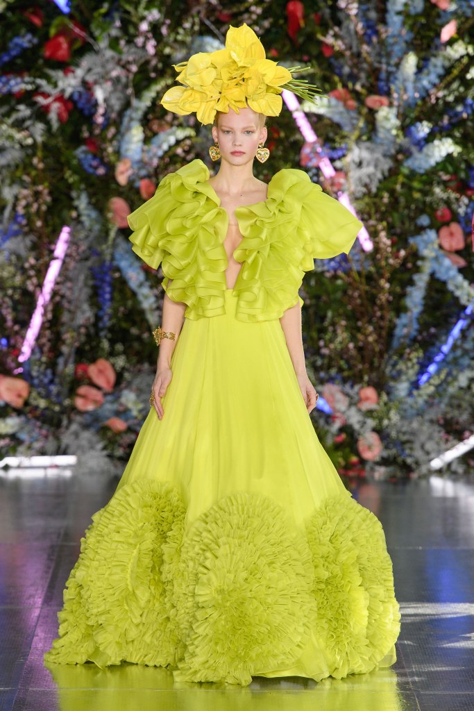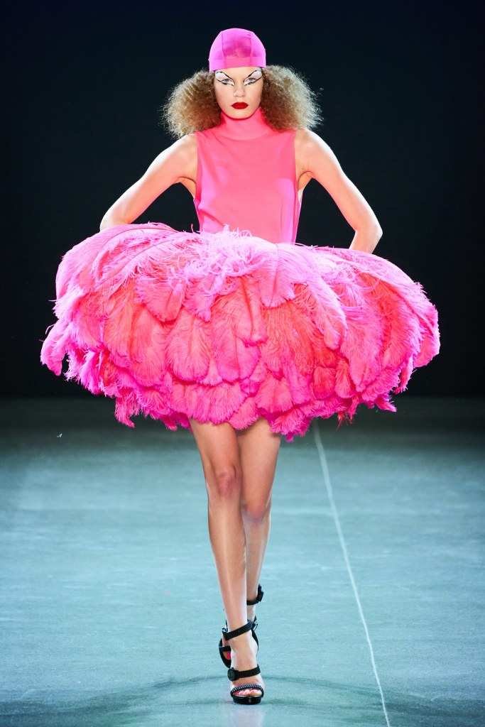 I love the idea of camp as a form of tromp l’oeil – a sartorial mind trick that plays with your expectations and is never quite what it seems. These designs from Thom Browne, Christian Cowan, Iris van Herpen, Gucci, Dolce and Gabbana, Moschino, and Schiaparelli all play with the eye – whether through actual tromp l’oeil, or mimicry of flowers, flamingos, and even a pair of dressmaking scissors.